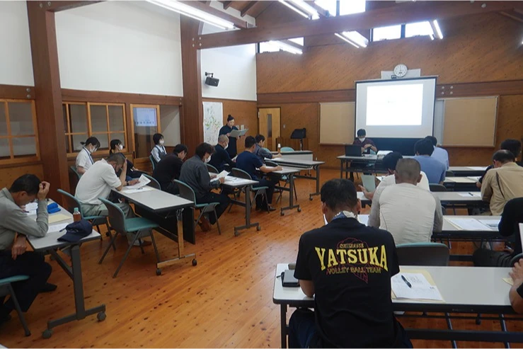 月に一度、安全対策を目的に事例(事故に至る可能性のあった出来事)をもとに意見を出し合い、発表をしています。