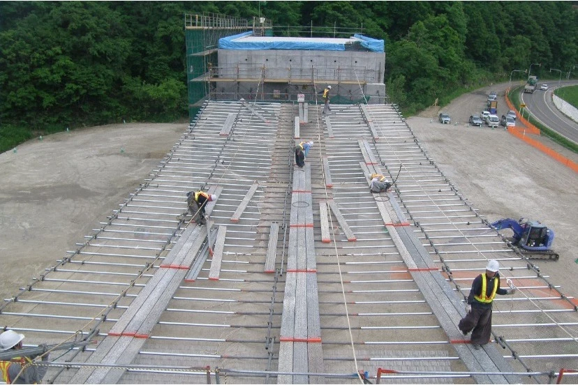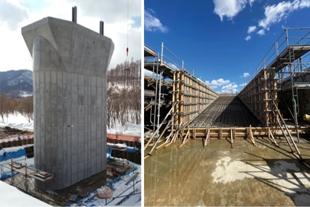 橋梁工事の下部及び上部工事や農業土木工事の開水路、管水路工事のほか、河川工事の鉄筋、足場、コンクリートなどの一連の工事を幅広く行っています。