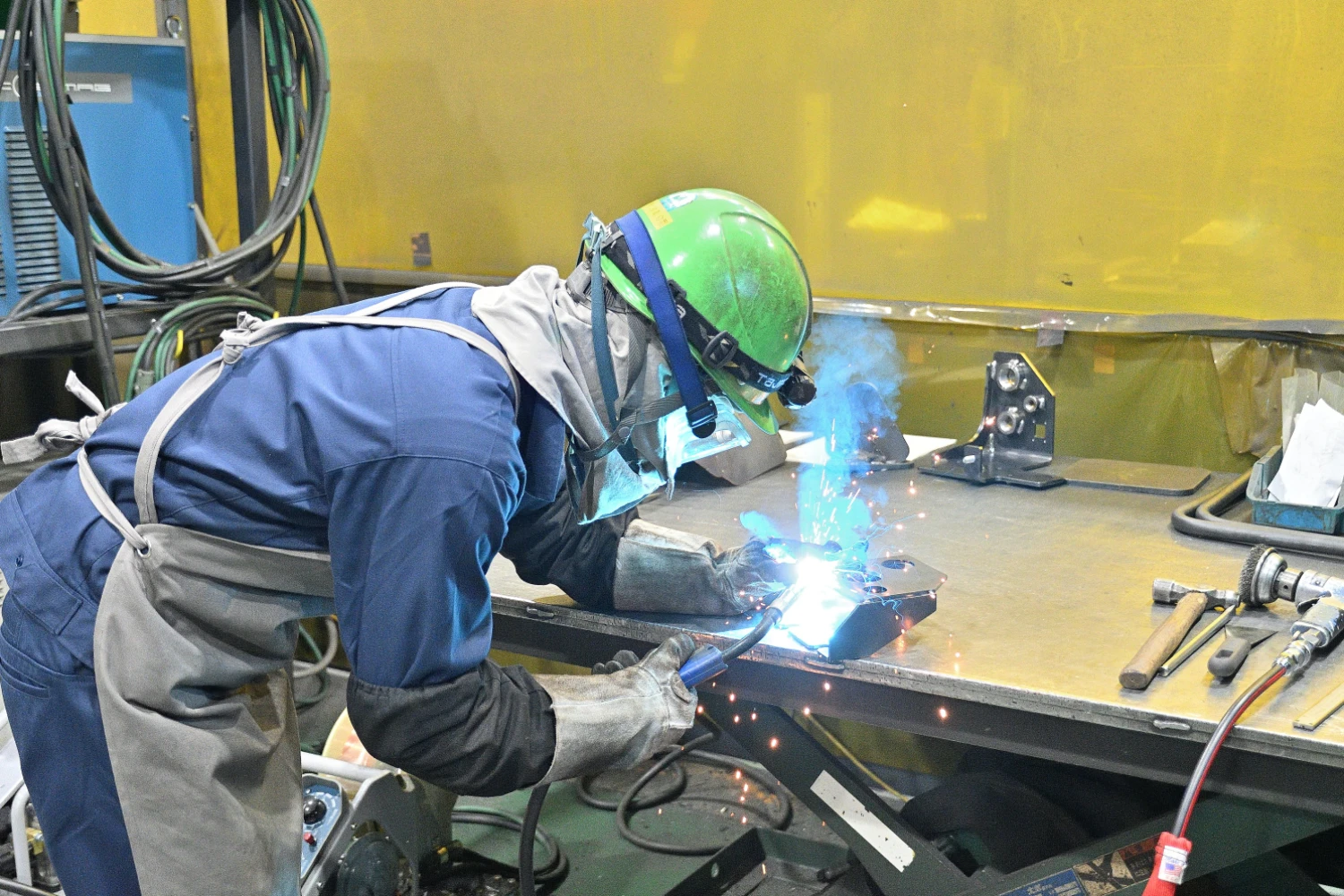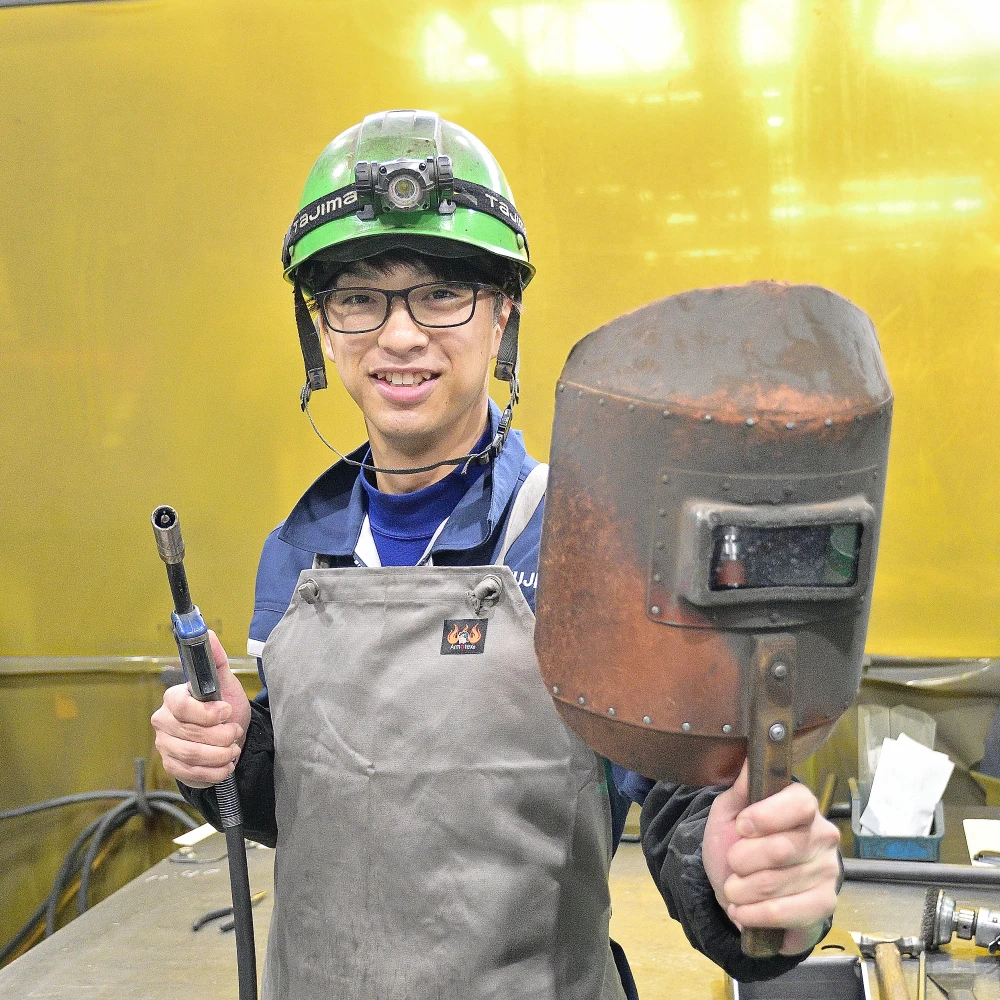 林業機械を構成する主要な金属部品の溶接作業をしています。溶接以外にもグラインダーで溶接個所をきれいにする作業も行っています。- メッセージ