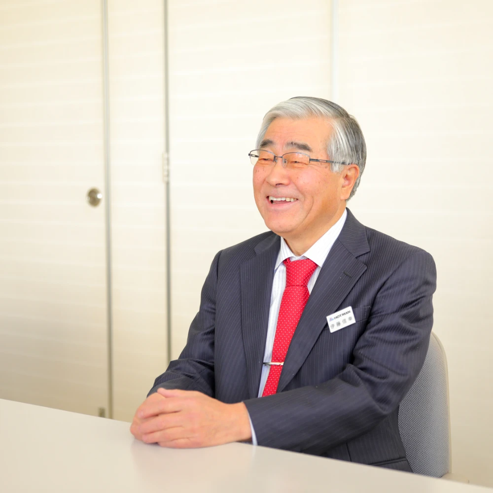 社名には「あったかい人、熱い人、挑戦する人、優しい人」が集う会社にしたいという想いが込められています。当社で採用したいのは「明・元・素(めい・げん・そ)」、つまり明るくて元気で素直な人です。明るく元気な人の周りには人が集まってきます。そして素直な人は、どんどんいろんなものを吸収して大きく成長します。当社には、「暗・病・短(あん・びょう・たん)」の人でも「明・元・素」になれる風土があります。いい人との出会いで人は変われます。あなたも、ホットマンで「明・元・素」になりませんか?