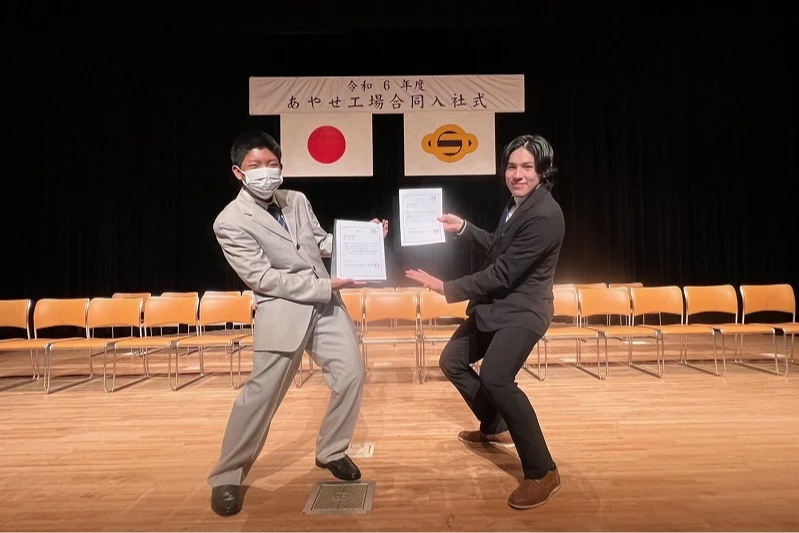綾瀬市が開催する合同入社式や研修に参加しています。研修や合宿を通じて、交流を促進し、会社は異なるけど同じ「同期」として支え合う関係を築くことで、新卒社員が成長できる環境を整えています。