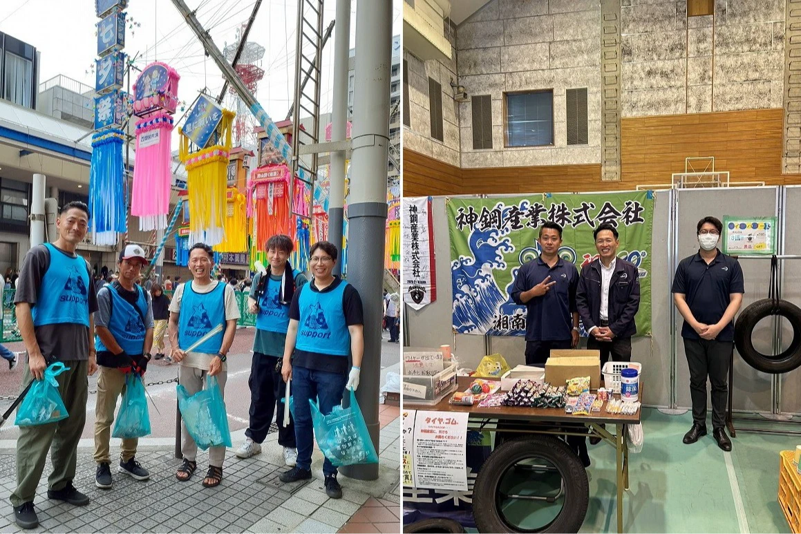 「ひらつか七夕まつり」では地元の人々と一緒に盛り上げ、地元中学校の職場体験学習ではリサイクル業務を実際に体験してもらっています。