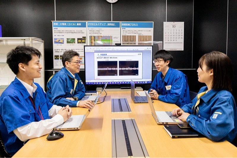 当社が製造しているプリント配線基板の多くは、研究開発分野の製品となり、皆さんの目に触れることは少ないと思います。しかしながら、我々が提供する基板を使用した研究開発事例から、市場に提供される新たなサービス・商品に繋がっていきます。大手メーカーのご担当者様と、次々世代の製品開発に向けた大変貴重な情報を預かり、製品を作り上げることで、お客様の満足度向上、社会貢献につながる仕事であると自負しております。