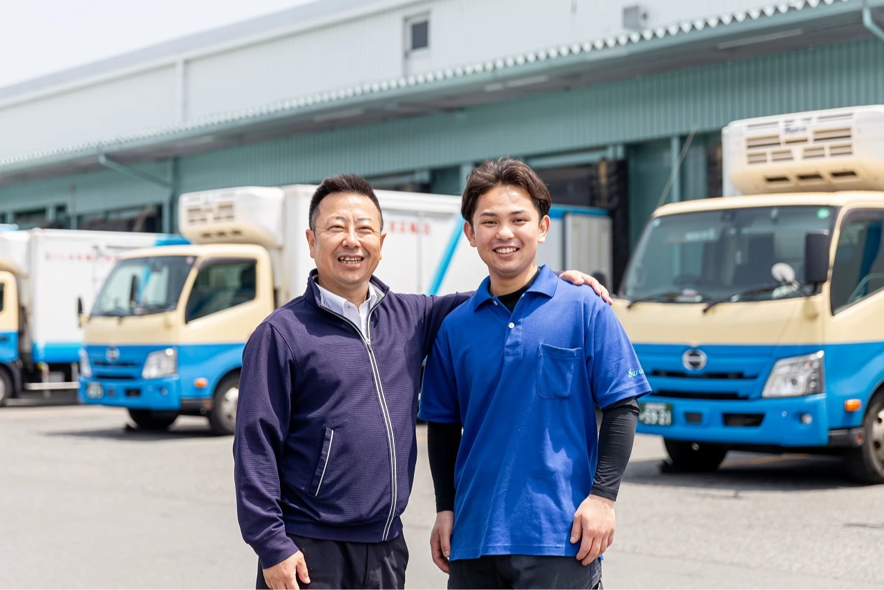 毎日、当たり前にスーパーには食品が並んでいますが、生産者から売り場に届き、皆さんが購入するまでには沢山の人が携わっています。そしてそれらを繋ぐことが私たちの仕事です。いわゆる裏方仕事と言われる仕事ですが、食を安定供給することは最大の社会貢献と考えて日々働いています。最近では、運送業が注目されニュース等で取り上げられることが増えてきました。物を運び、触れたりする運送業の魅力が多くの方に伝わればと思っております。トラックは小型車両から大型車両までイロイロとあり、免許取得のサポートもしています。