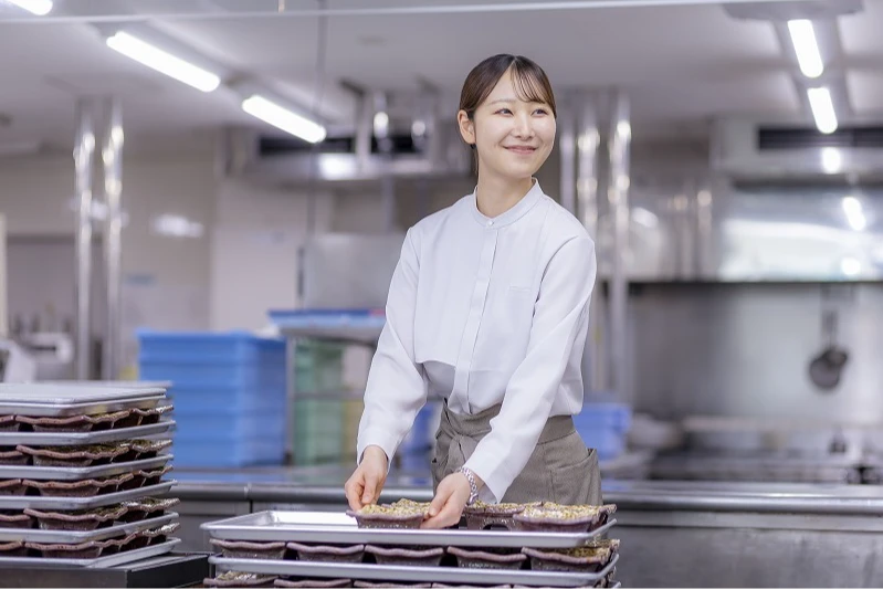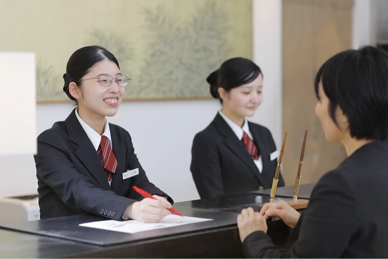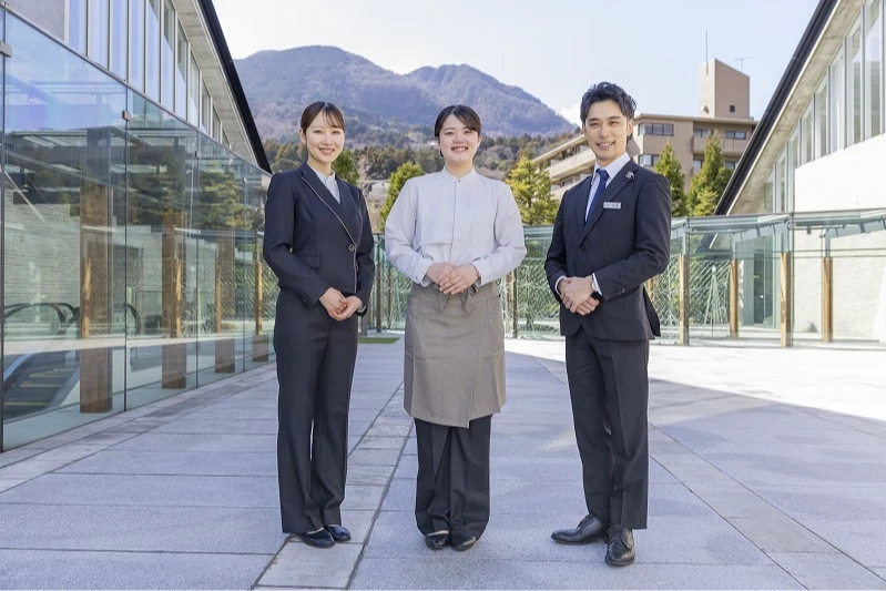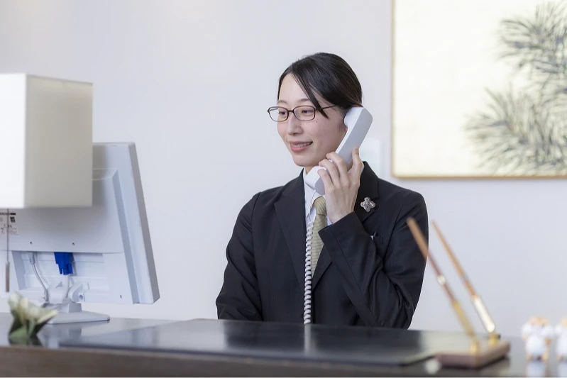サービス部門では、フロントでのご対応や電話応対、和食会席レストランでの料理提供などを通し、お客様に快適にお過ごしいただけるよう多方面からサポート。他、イベント企画やドリンクメニュー考案など、経験できる業務は多岐にわたります。細やかな心配りでお客様の「笑顔をつくるシゴト」が私たちの役割です。