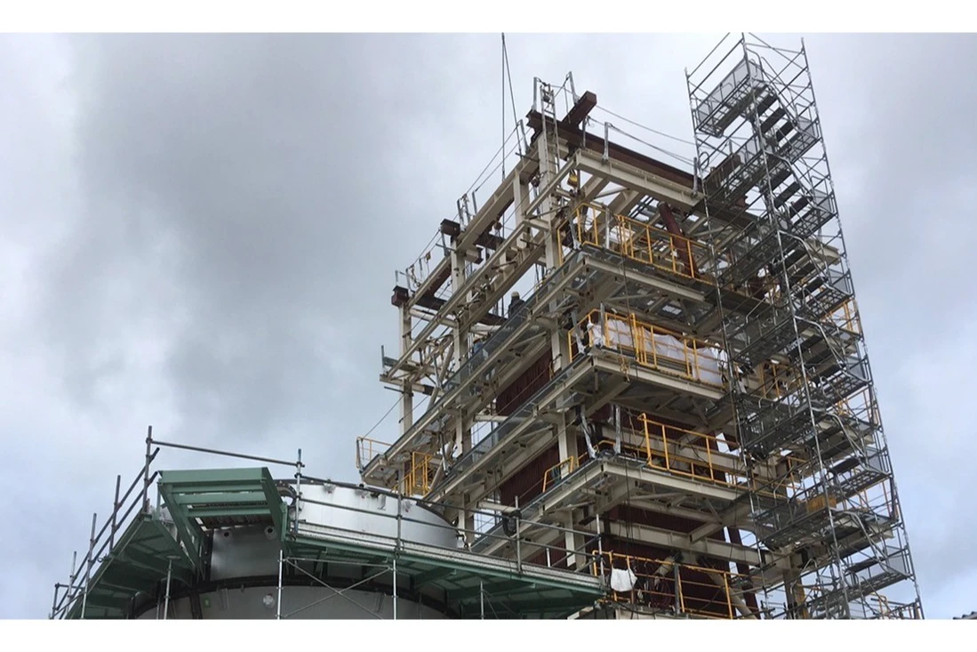 一つ一つ丁寧に水平を出しながらボイラーブロックを据付していきます。