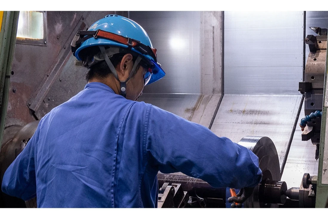 さまざまな種類の工作機械を使用し、過給機の心臓である回転部品(大きいもので2m)を中心に1/100ミリと高精度に機械加工を行っています。