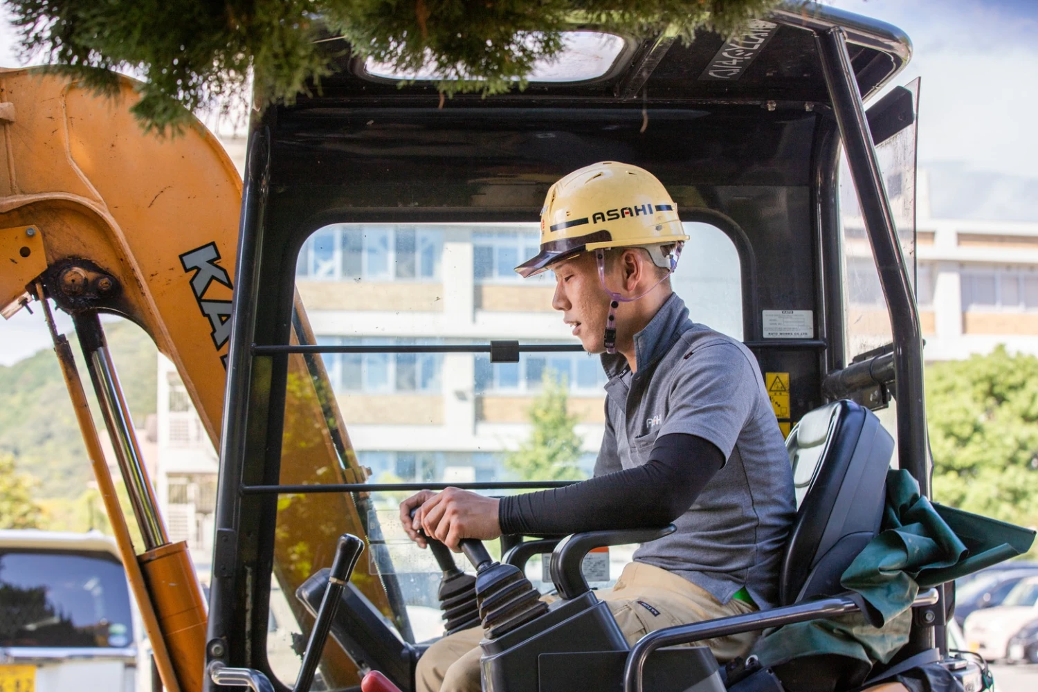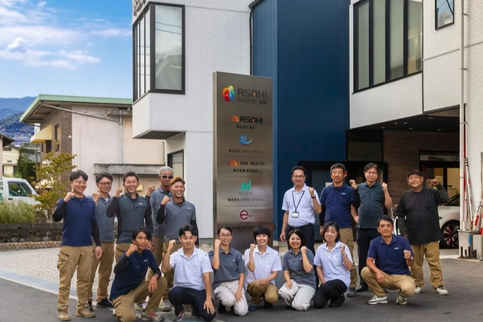 朝日グループの前身となる(株)朝日は今年で創立61年目を迎えました。始めは小さな鉄工所でしたが、1972年の豪雨災害により岡山県内で多くのがけ崩れ・建物倒壊が続き、復旧に向けて土木業界に参入しました。現在では、一般土木・管工事・法面防災・設計コンサルを主に事業を展開しています。総勢7社の結束力とICTも積極的に活用しながら、自然災害から地域の皆様の人命・建物を守っていく使命を感じています。
