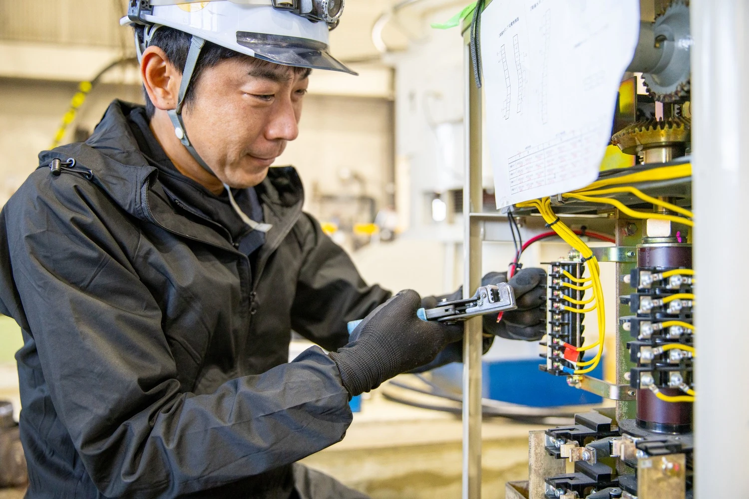 弊社は岡山県倉敷市で、変電所、発電所、石油工場、製鉄工場などを中心に電気設備工事やプラント工事の施工を行っています。平成元年の創業から、特殊な設備や制御技術に関する専門実績を重ね、社会のインフラを影ながら支えて参りました。現在は価値観や生活様式が次々と変わっていく時代ですが、そんな時代だからこそ、人との繋がりに価値があると考えています。我々の仕事は、一人では何もできません。チームワークが全てです。だからこそ社員みんなが充実した気持ちで仕事ができる環境が大事だと思っています。充実した賞与を含めた給与体制があり、残業が少なく休日もきちんと確保され、社員のプライベートが充実してこそ、良いチームワークにつながり、それが結局良い仕事となって、お客様の満足へ繋がると考えています。社会インフラの一番根っこの部分で誇りとやりがいをもって充実した社会人生活を一緒に送りましょう。