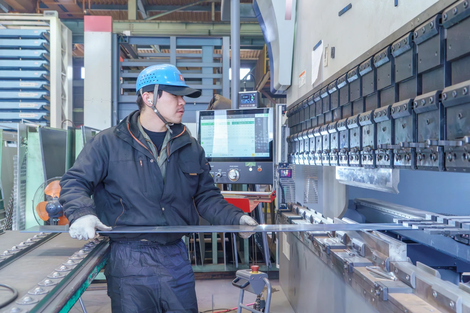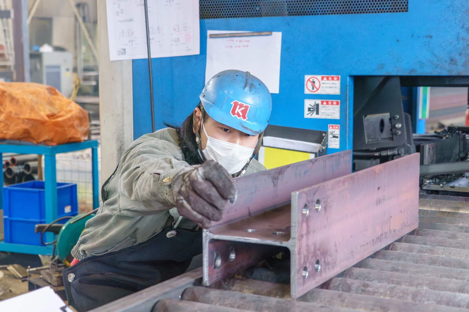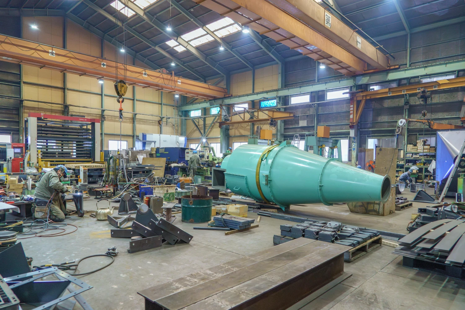 当社は、鋼板のレーザー切断・曲げ・ロールなどの加工、製缶・溶接、素地調整、塗装、仮組、検査まで自社一貫体制で行います。各種一通りの大型設備を保有しており、高品質で短納期を実現しています。大手企業と直接取引で、高収益を誇り、2 0 2 3 年7月に日工(株)東証 プライムのグループ会社となり、さらに安定した体制となりました。モノづくりを通じて社会 に貢献できるよう、社員一同頑張っています。