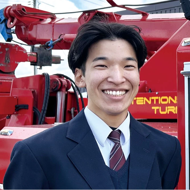 私たちの仕事は、以前は事故処理が中心で、警察やNEXCOからの連絡を受けて車を移動させる作業をしていましたが、現在は事故車だけでなく故障車の割合も増え、直接お客様と接する機会が増えてきました。私たちを必要とする時、お客様は不安な状況ですから、先ずは安心してもらう事が大切です。今までとの違いは、技術だけでなく対人力が必要になってきているという事です。その為、「車好き」「人好き」で、明るく前向きな姿勢で仕事に取り組める仲間と一緒に働きたいと思っています。屋外での作業や昼夜問わずの出動依頼で大変な事もありますが、直接感謝の言葉をいただいた時には、この仕事をしていて良かったと喜びがこみ上げます。大きな事故処理等の場合、レスキュー隊と作業をする事もあり、周囲にその一挙手一投足が見守られる事も多く、時折「おー、すごい」という声も聞こえてきて、自分たちの仕事の価値を体感する事もあります。また色んな資格を取れば、それだけ守備範囲も広くなり、当然対価にもつながります。先輩たちも自分たちのノウハウを惜しみなく教えてくれるので、安心してください。