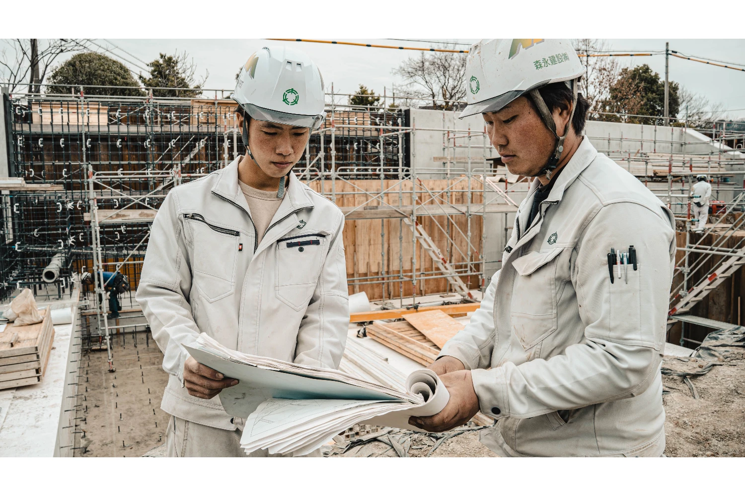 現場でも、むしろ現場こそ細かな確認、連携が不可欠です。安全第一に、一つ一つの工程を確実に積み重ね、工事を完成まで導きます。