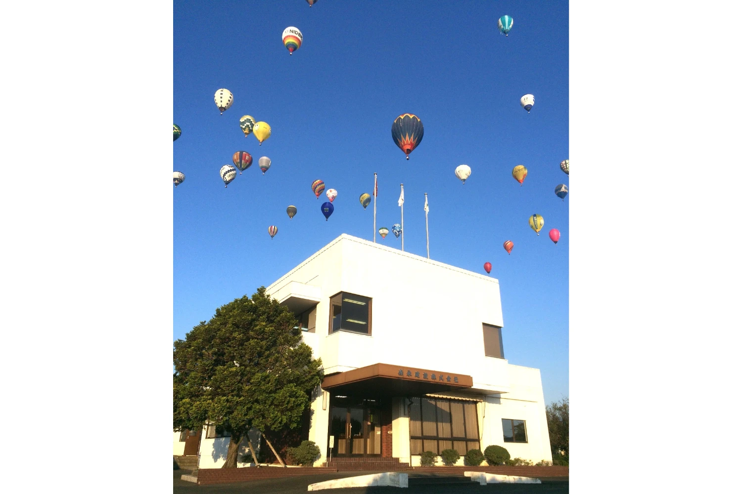 本社はバルーンフェスタ会場のすぐそば!時期になると、たくさんのバルーンを間近で見上げることができます。まさに特等席、圧巻の景色です!