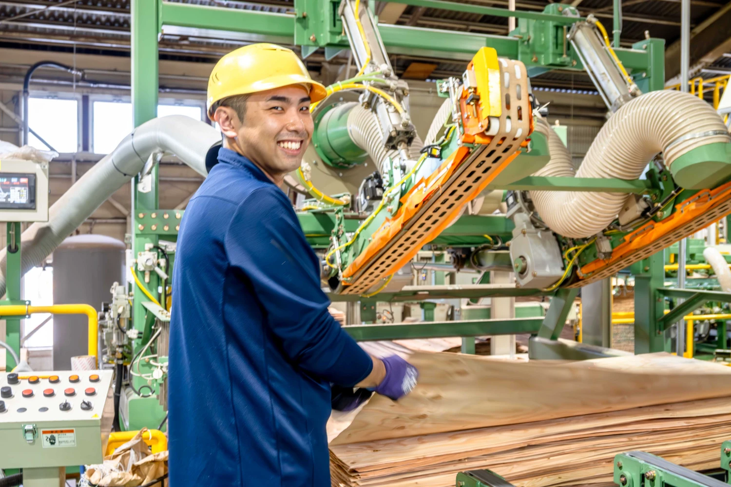 合板工場もIT化やロボット化が進み、工場の就労環境は変貌を遂げつつあります。相変わらず「キツイ」「忙しい」という声もありますが、やりがいを感じられる職場です。以前は力仕事のイメージも強かった合板工場ですが、部署によって仕事の内容も様々で、一人ひとりが適性に応じた働き方が可能となっています。