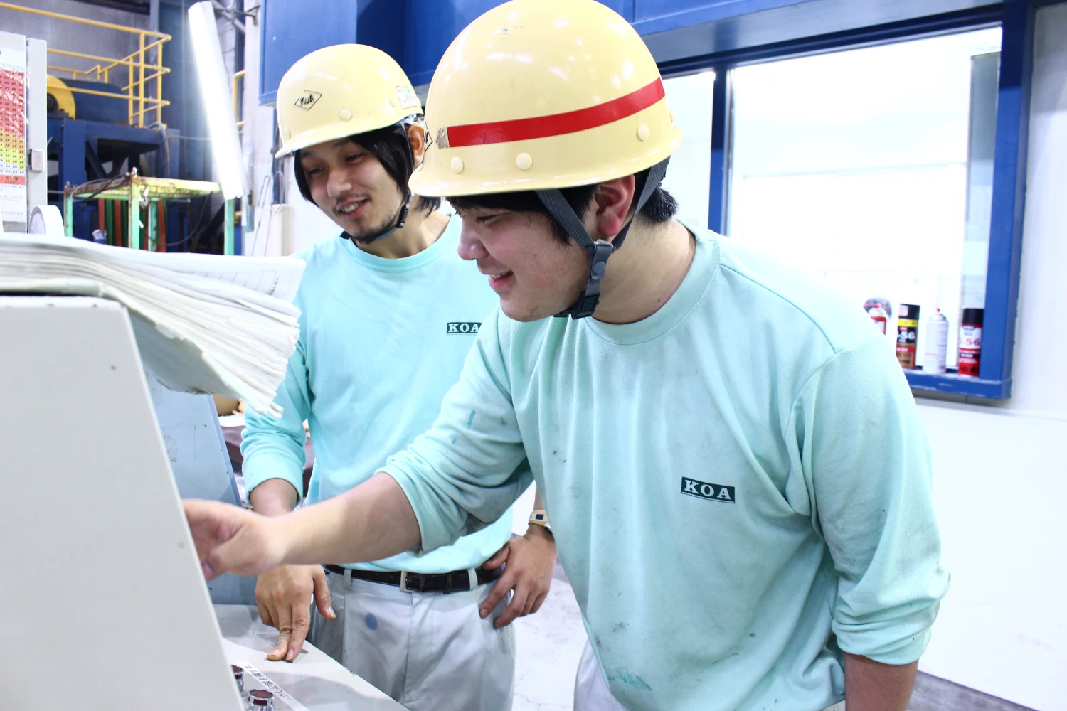 工場勤務となる技能職の場合、入社後1ヶ月半は会社の基本的な部分を座学や現場研修で学んでいただきます。その後、配属となり、その部門のプロフェッショナルとなるべく、マニュアルの教育・OJT教育・資格取得が行われます。製紙工程を例に挙げると、ワインダーという出荷前の製品の最終工程を主に任されます。その後は抄紙の上流の工程を手伝いながら仕事を覚え、目方・元番といったパートを任されるようになります。最終的には、これらすべてを経験し会得した班長となります(20年程度)。更に、マシンの操業を任される係長となることも夢ではありません!