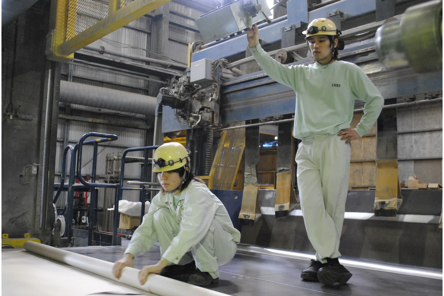 大きな製紙機械や設備を操作して、実際に紙を作る「製造」!運転操作だけでなく、機械のメンテナンスや品質のチェックも欠かしません。”モノづくり”に直接関わります。
