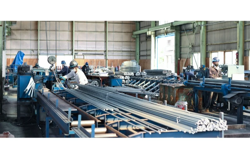 当社は鉄筋加工のための自社工場(加工センター)を保有しております。鉄筋の切断や曲げ加工、スポット溶接加工などは、最新鋭の機械により、鉄筋加工図に従って正確に行いますので1本1本を高品質な仕上がりでお届けすることが可能です。従来の加工はもちろんのこと、新しい工法や複雑な加工にも積極的に取り組み、現場施行のパートナーとして高品質な製品をお届けし、省力化を実現しています。