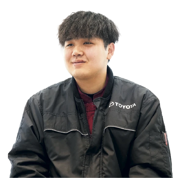 - 元々車が好きという事もあり、入社を決めました。入社当初は全く知識がなかったのですが、先輩方が丁寧に教えてくれたこともあり、仕事を通して知識が増え、今は自分で自分の車をメンテナンスできるのが楽しいです。また、職場がすごくフレンドリーです。わからない事など、すぐに聞きやすい環境なので仕事がしやすいです。