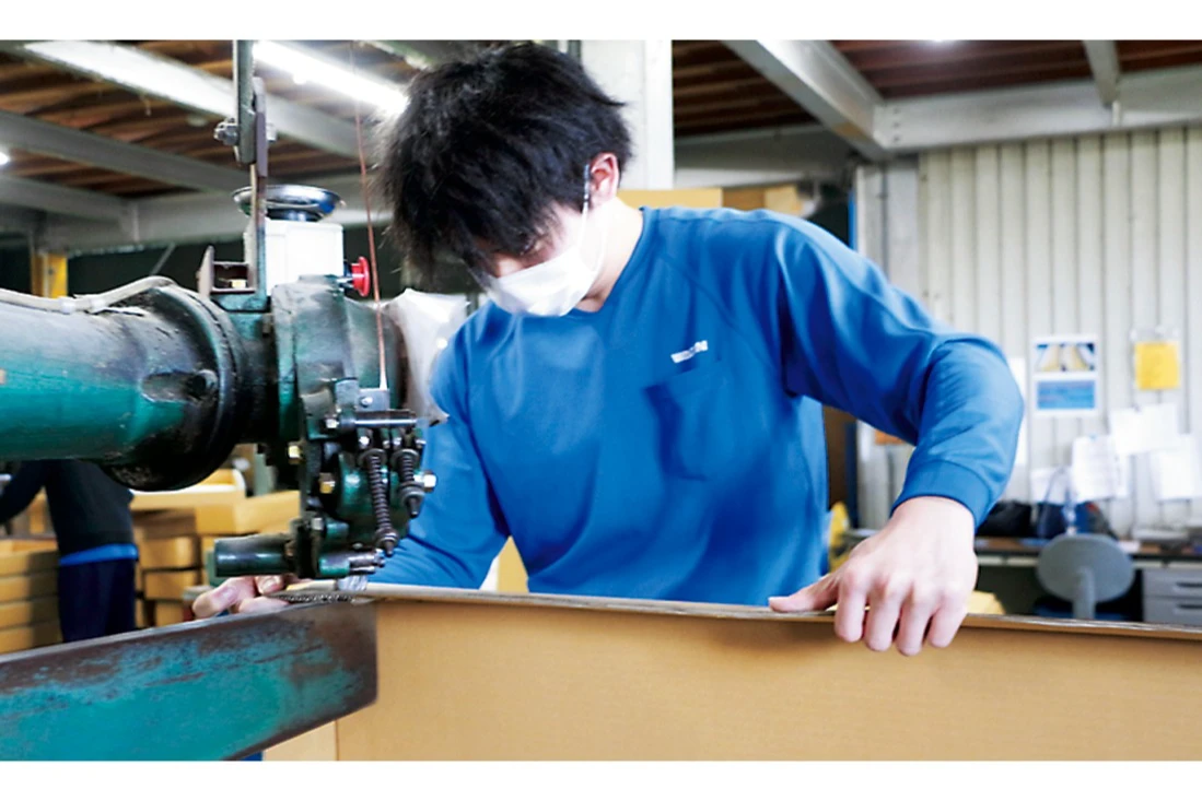 - 元々物を作る事に興味があり、将来は物作りの仕事に携わりたいと思っていました。求人票を見て、会社を見学して自分たちが普段使っている段ボールがこんな風に作られているのかを知り、自分も世の中の物流を支えたいと思い、入社を決めました。