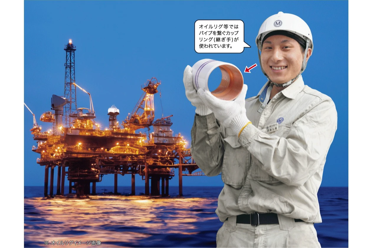 井戸を掘り、掘り当てた石油·天然ガスを数千mの地中から地上へ引き上げる為に、シームレスパイプ(継ぎ目無し鋼管)や、このパイプを繋ぐカップリング(継ぎ手)が使われています。