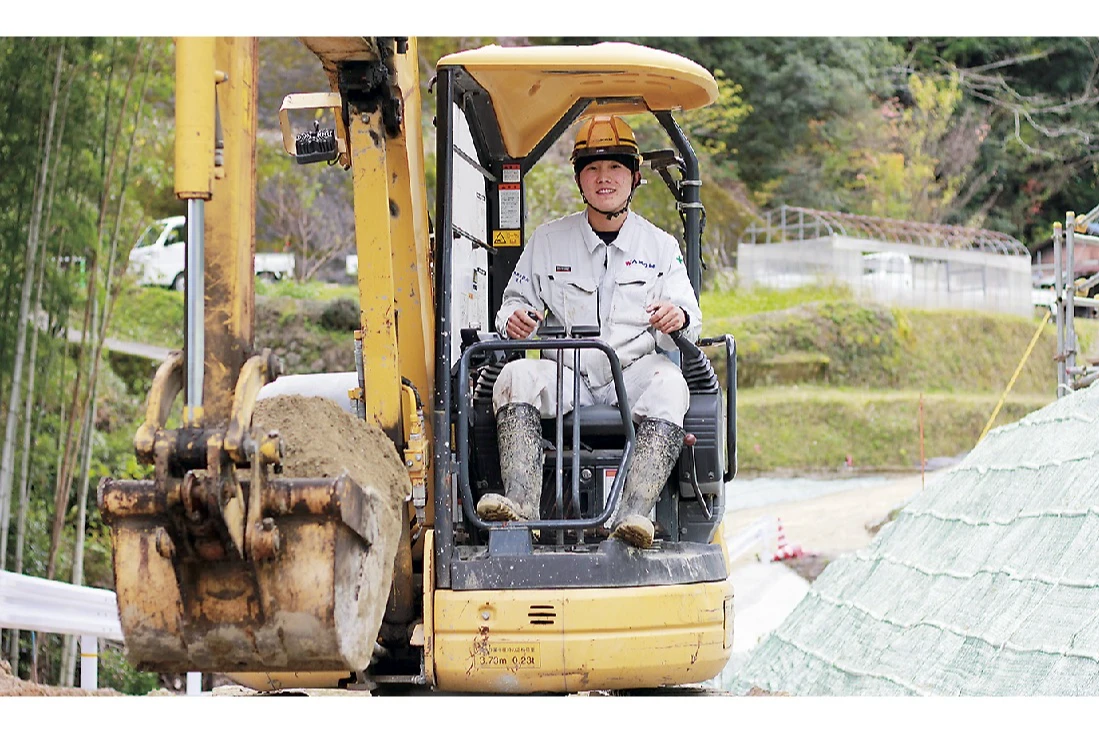 一般道や林道などの道路工事や堤防や護岸といった河川工事などをおこなっています。災害時までを見据えた完成度を追求し、暮らしている人々の安心と安全を支えます。
