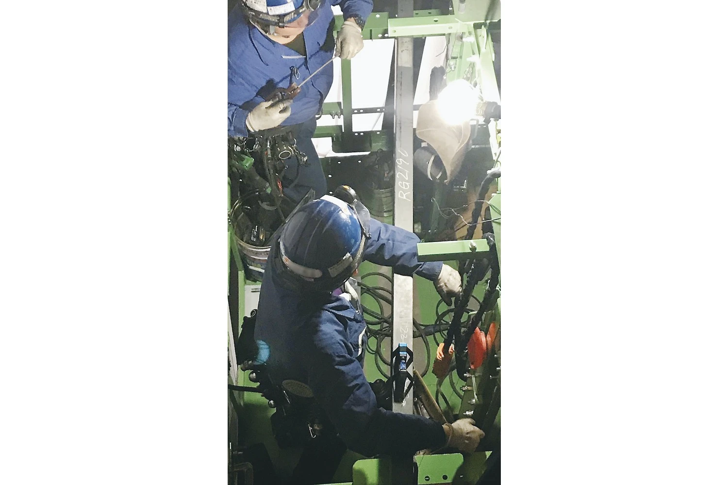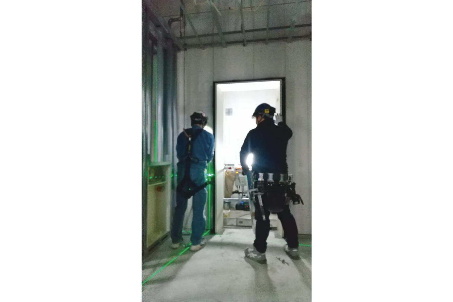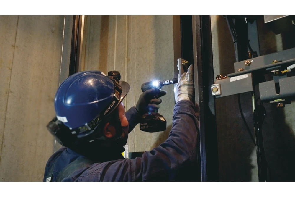 私たちの仕事は、そのエレベーターをゼロから組み上げ、完成させるプロフェッショナル。ミリ単位の精度が必要とされる現場で、設置するレールの垂直を出す、ワイヤーやドアの取り付け、動力装置の設置など、建築・電気・機械の知識を駆使しながら、現場ごとに異なる条件に対応していきます。