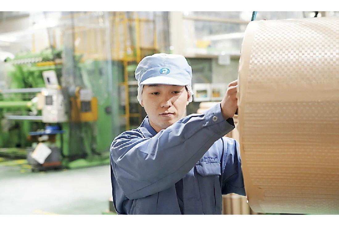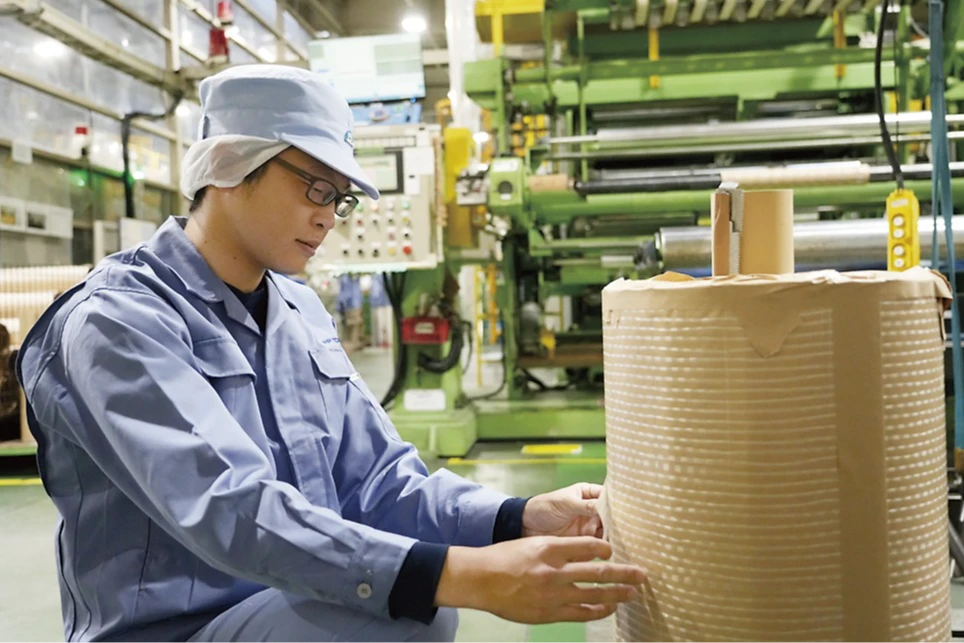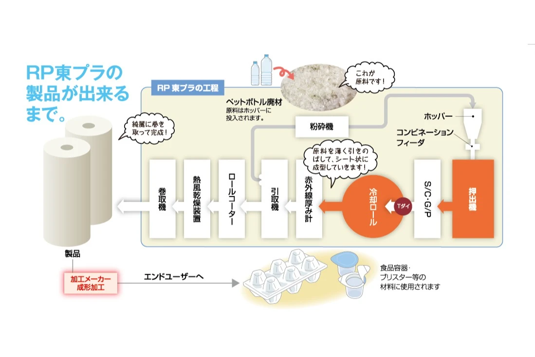 そのなかで、和歌山工場で生産しているのは、卵のパックや食品用の容器などを作るためのフィルム状の原反(再生用PET素材を主原料としたポリエステルシート)です。自慢の技術で、地域と地球の環境に貢献します。